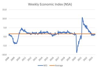 The New York Federal Reserve produces a Weekly Economic Index which follows changes in a large number of important economic data series. It’s not a GDP measure, but an index of ten daily and weekly indicators of real economic activity, scaled to align with the four-quarter GDP growth rate. The…