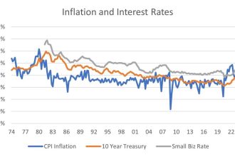 High inflation is more than a tax on everyday spending, it also impacts longer run costs through higher interest rates. Chart 1 shows the relationship between inflation (blue line), interest rates (orange line), and the rate paid by small business owners on their loans (gray line). The recent decline from…
