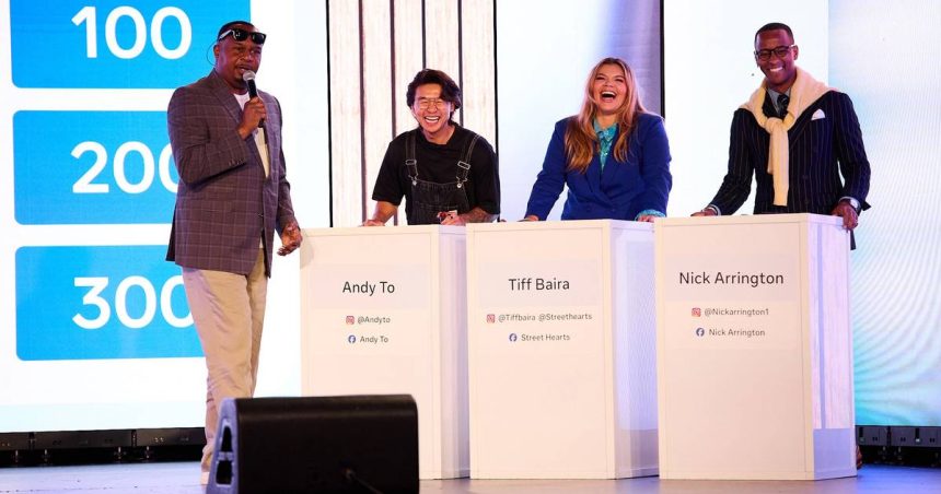 At Meta’s NewFronts presentation in New York on Thursday, three creators, including social series Street Hearts host Tiff Baira, participated in an onstage game show hosted by comedian Roy Wood Jr.
