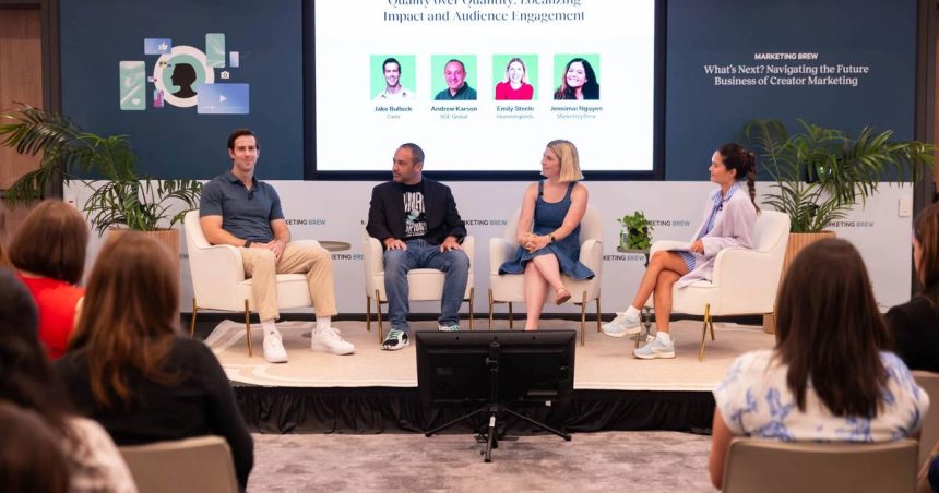 These are just some of the companies that were represented at Marketing Brew’s What’s Next? Navigating the Future Business of Creator Marketing event in New York last week. Executives discussed the evolving creator marketing landscape, which is being shaped by new platforms, trends, and technologies. Below are a few of the juiciest tips given onstage.